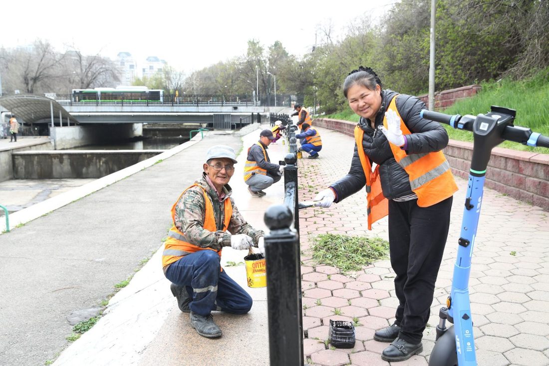 Қоқысты жинаумен қатар, жағалау ауданындағы серуендеу жолдары мен аллеяларда қоршауларды, орындықтарды, басқа да заттарды сырлау жұмыстары бір мезгілде жүргізілді. Жұмыстар Абай даңғылынан Райымбек батыр даңғылына дейінгі жағалау учаскесін қамтыды.