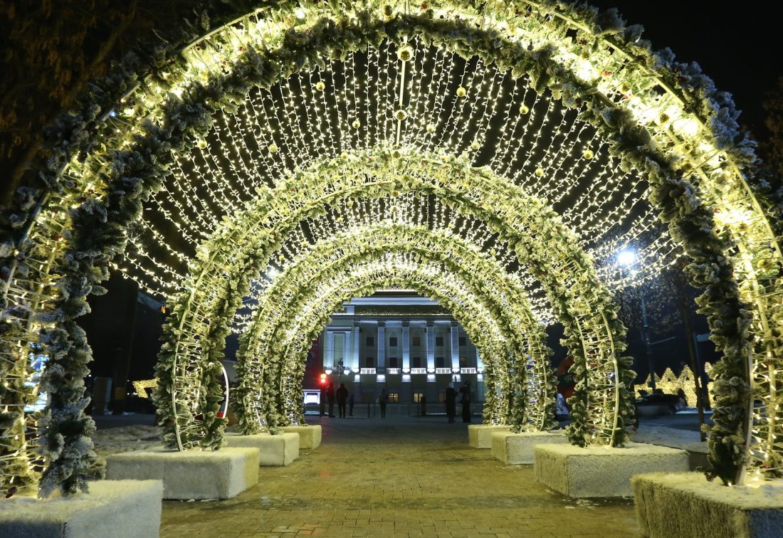 Әуезов ауданында Наталья Сац атындағы балалар мен жасөспірімдерге арналған мемлекеттік академиялық орыс театрының алдындағы алаң халық жиналатын танымал демалыс алаңына айналды. Күндіз театрда «Ертегілер әлеміндегі жаңа жылдық калейдоскоп» шоуы ұсынылған, ал кешкі уақытта мерекелік концерт театр алдындағы ашық алаңда өтеді.