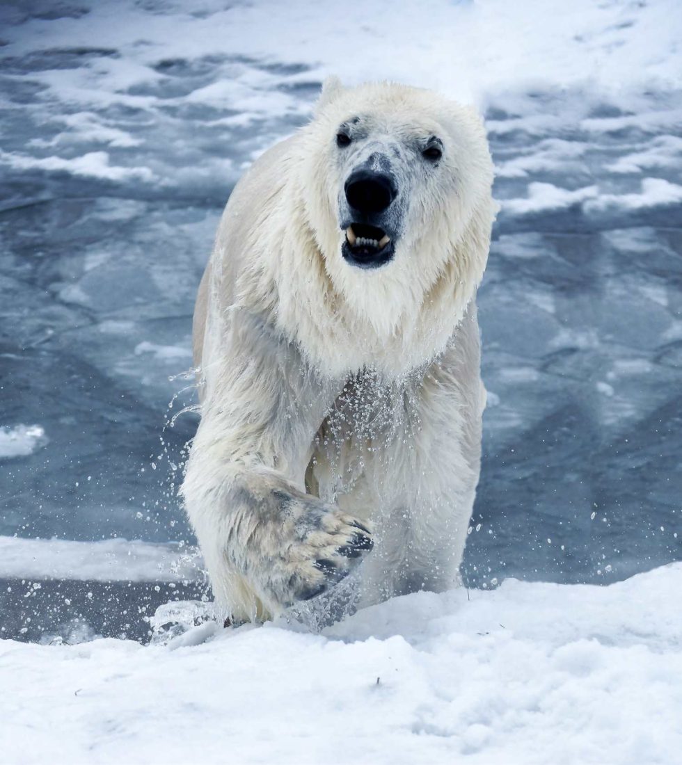 Наибольшее внимание привлекает белая медведица по кличке Пурга. Ей уже 6 лет, и она живет в просторном вольере почти в полгектара с двумя бассейнами.