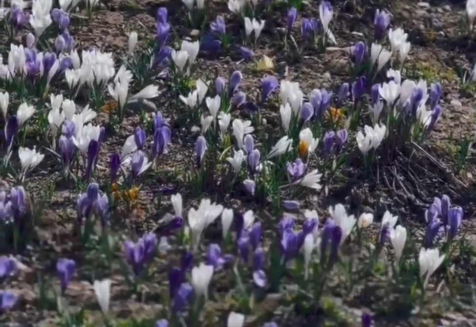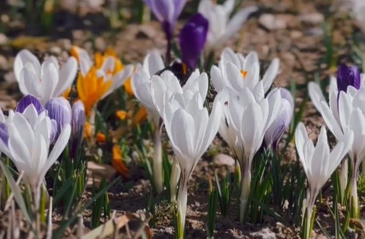 Более 100 тысяч многолетних цветов было высажено осенью 2023 года. Этой весной зацвели крокусы с белыми, синими и лиловыми цветками.