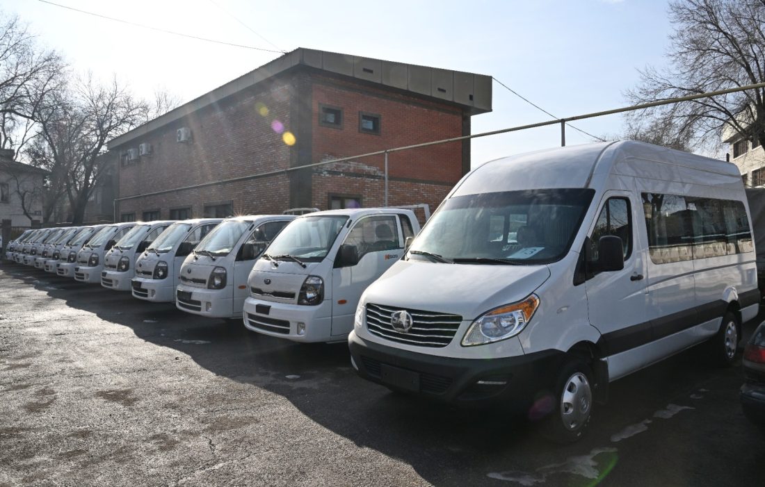 22 декабря 2023 года для КГП на ПХВ «Городская ветеринарная служба» г.Алматы приобретены 12 единиц легкового грузового автотранспорта с бортовой платформой, 2 трицикла, трактор, пассажирский автобус для развозки рабочих службы отлова и легковой автомобиль.