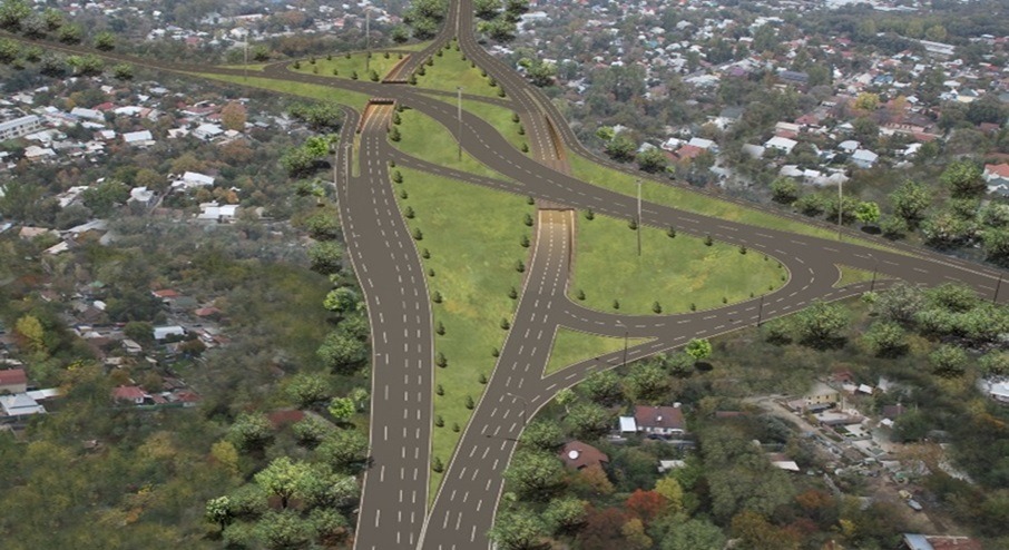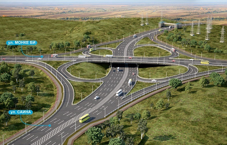 В 3-м квартале т.г. планируется запуск транспортной развязки на пересечении ул. Саина с ул. Монке би. Это развязка по типу «клеверный лист», с подходами и съездами во всех направлениях. Предусмотрено устройство тротуаров и велодорожек протяженностью 2,3 км.