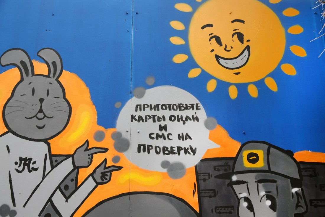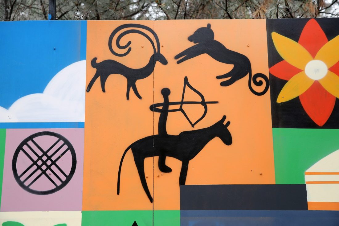 На этом огромном холсте длиной 420 метров создали десятки композиций, над которыми трудились 80 художников. Несмотря на то что все сюжеты на первый взгляд кажутся разными, есть нечто, что их объединяет. Идея проекта в том, что он олицетворяет казахский алфавит. Каждый из художников выбрал себе определенную букву и, отталкиваясь от нее, создавал свой рисунок. К тому же алфавит ведь вообще имеет большое значение в творчестве стрит-артистов, у каждого есть собственная, особая подпись, так что буквенные символы для них символичны.