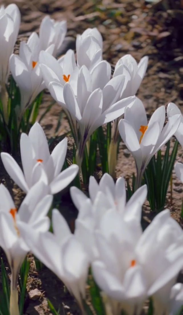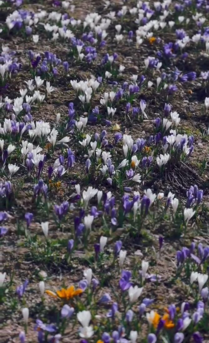 Қала тұрғындары мен қонақтары крокусты көріп, ашық түсті гүлдің фонында суретке түсіп, қуанышқа бөленуде.