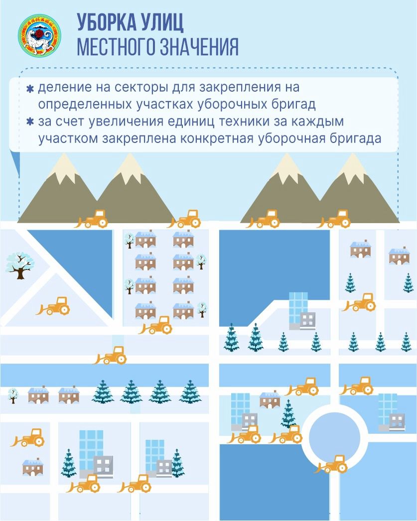 По мере отработки спецтехники и дорожных рабочих на вышеперечисленных объектах производится уборка снега на улицах районного значения и дворовых территориях, а также на въездах административных зданий города.