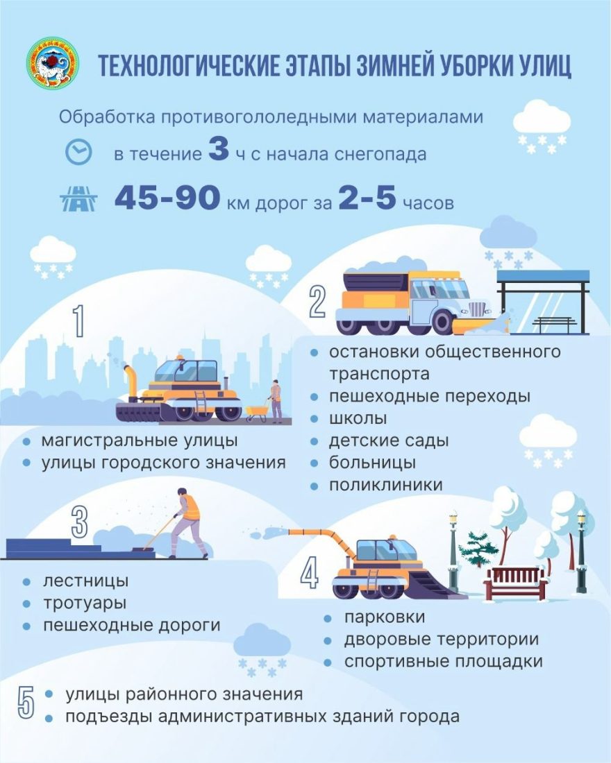 По данным Управления развития коммунальной инфраструктуры города Алматы, зимняя уборка улиц осуществляется в соответствии с технологией, утвержденной в «Правилах благоустройства территории города Алматы» (решение VI сессии маслихата города Алматы от 12.12.2007 года №45).