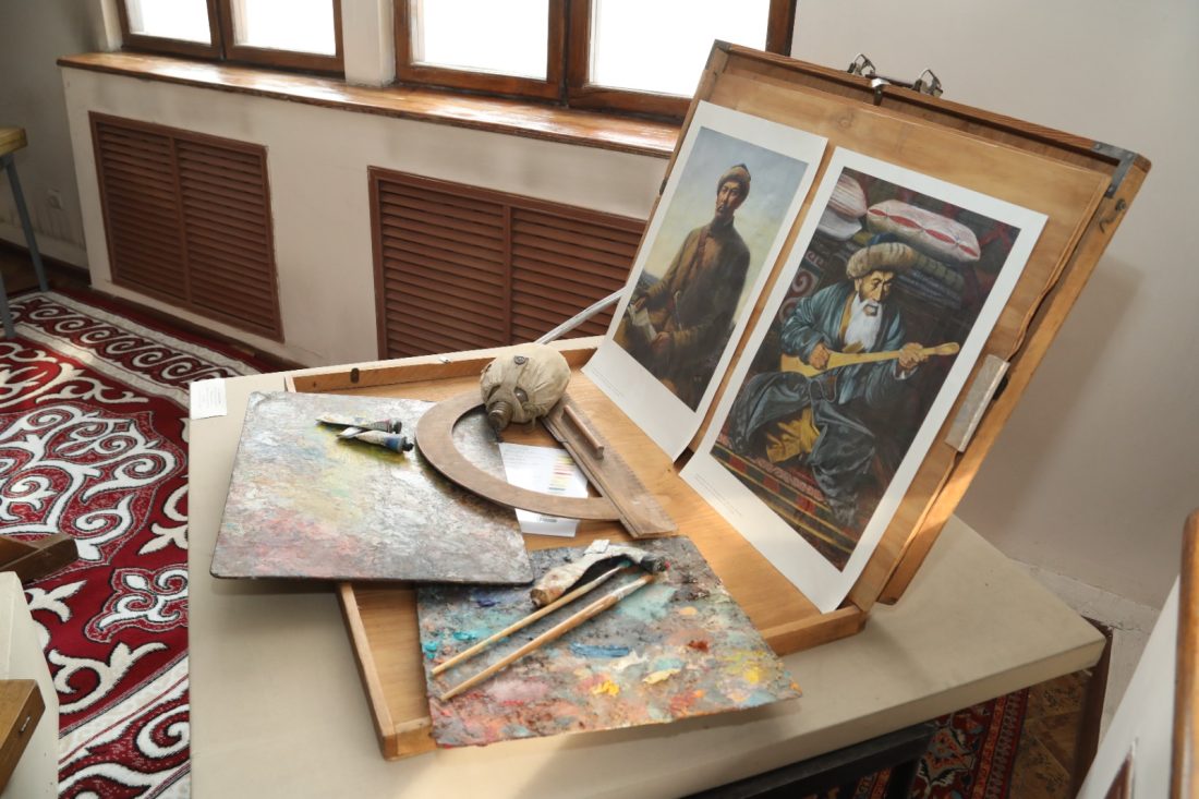 «1968 жылы ағаның сұрауымен шеберхана салынып, суретшінің үздік туындылары дүниеге келеді.  Өмірінің соңғы сәттерінде туған жері туралы, Қапшағайдың құрылысы, Түрксіб теміржолы, т.б. картиналарын дәл осы шеберханада салады. Осы шеберханада «Амангелді сарбаздары», «Қапшағай ГЭС-і», «Кенен Әзірбаев» сынды кескіндемелік шығармалары мен бірнеше акварельдік жұмысын жазды. Бір ғана Амангелді бейнесін жасау үшін жүзден аса эскиз жасаған».