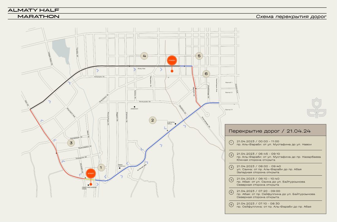 21 апреля 2024 года состоится Алматинский полумарафон. Более 8 тысяч участников стартуют от парка первого Президента по проспекту аль-Фараби и финишируют на Центральном стадионе.