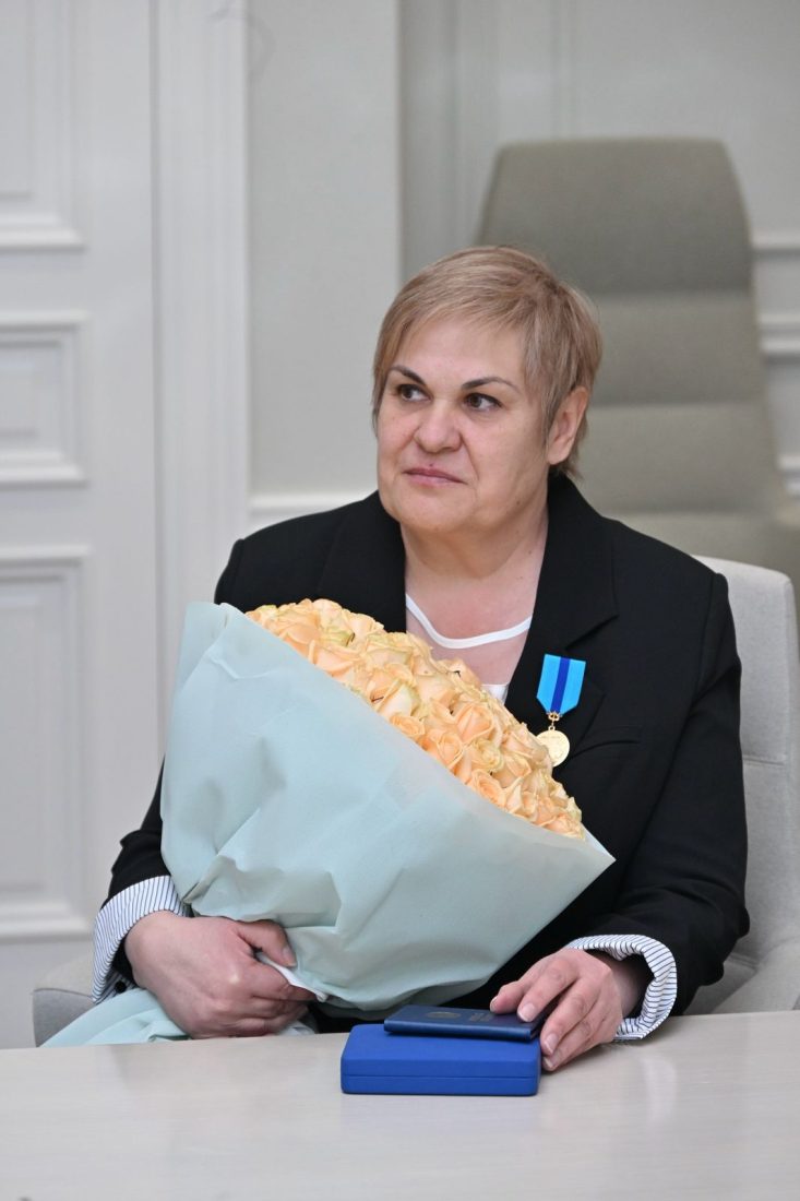 «Ерен еңбегі үшін» медалімен «ALMATY MAI» ЖШС шикізатты қабылдау және шротты түйіршіктеу цехының бастығы Ирина Хасанова марапатталды.