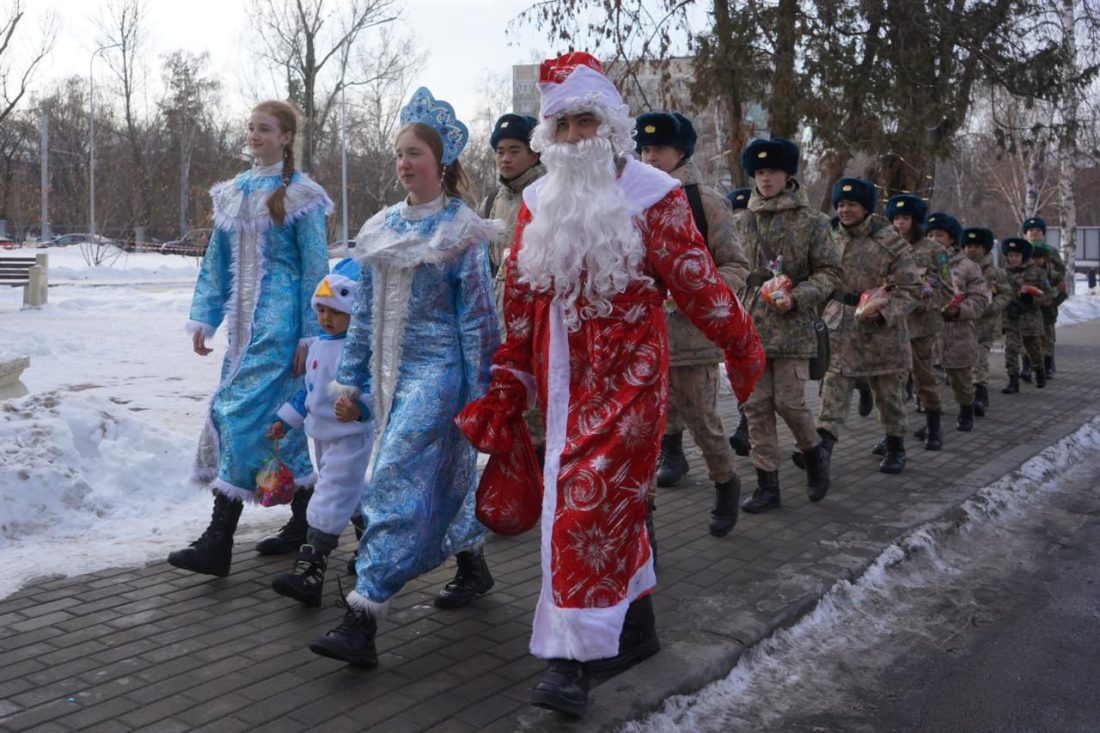 Аяз Атаның терезе арқылы пайда болуы балалар мен ересектердің көңілінен шықты. Әскери-патриоттық клубтың балалары сыйлықтарды қуана табыс етті, ал балалар өз кезегінде оларды өлеңдерімен және әндерімен қуантты.