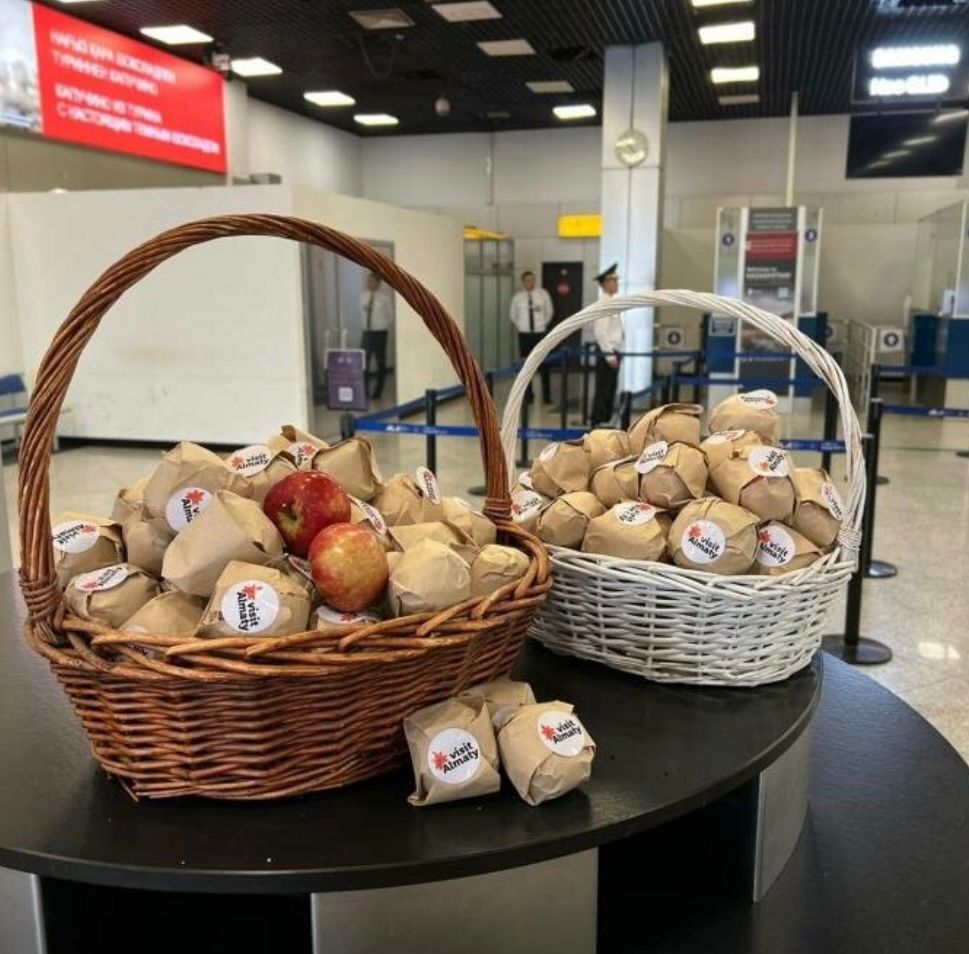 Қала күніне орай Алматы халықаралық әуежайының жолаушыларына алма ұсынылады