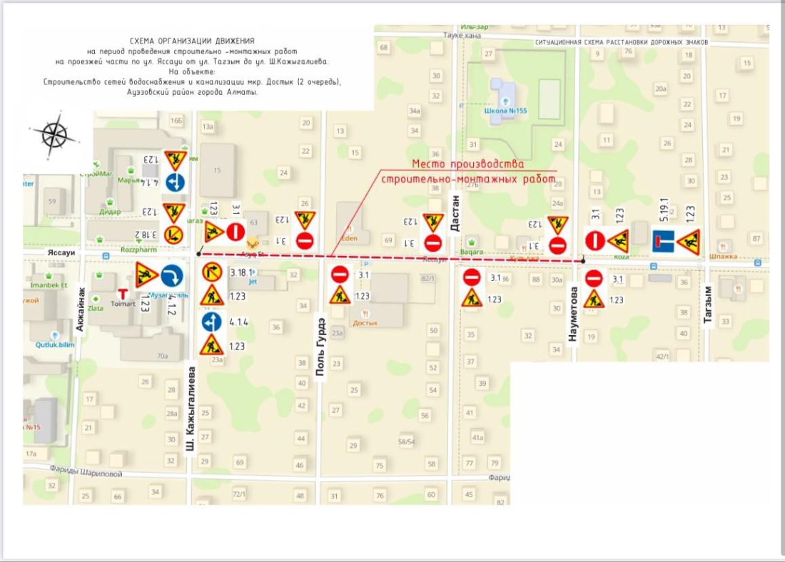 Достық шағын ауданының аумағында су құбыры мен кәріз желілерін тарту бойынша құрылыс-монтаж жұмыстарының басталуына байланысты 2025 жылғы 9 шілде мен 30 тамыз аралығында Яссауи көшесі кезең-кезеңімен толық шектеледі: