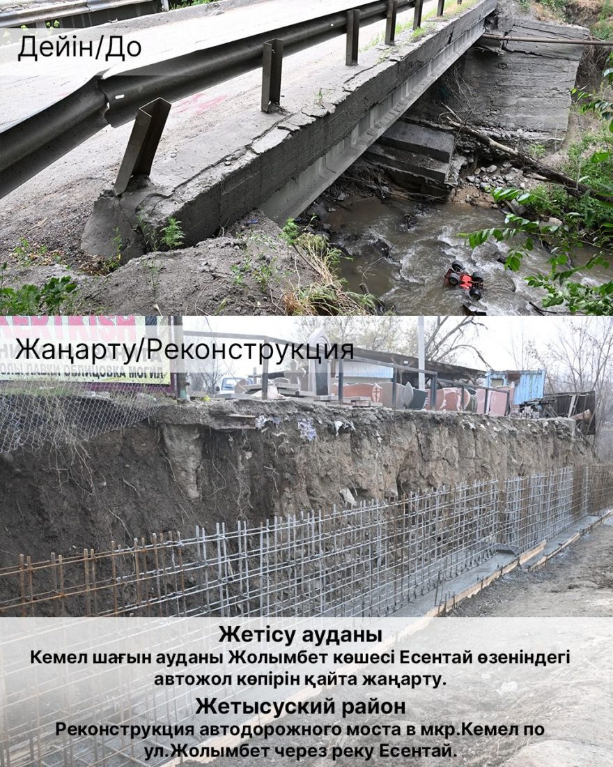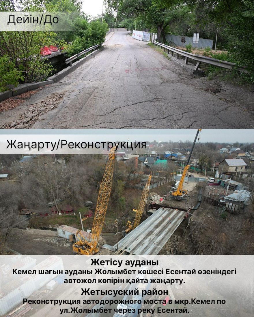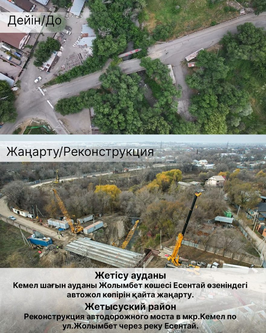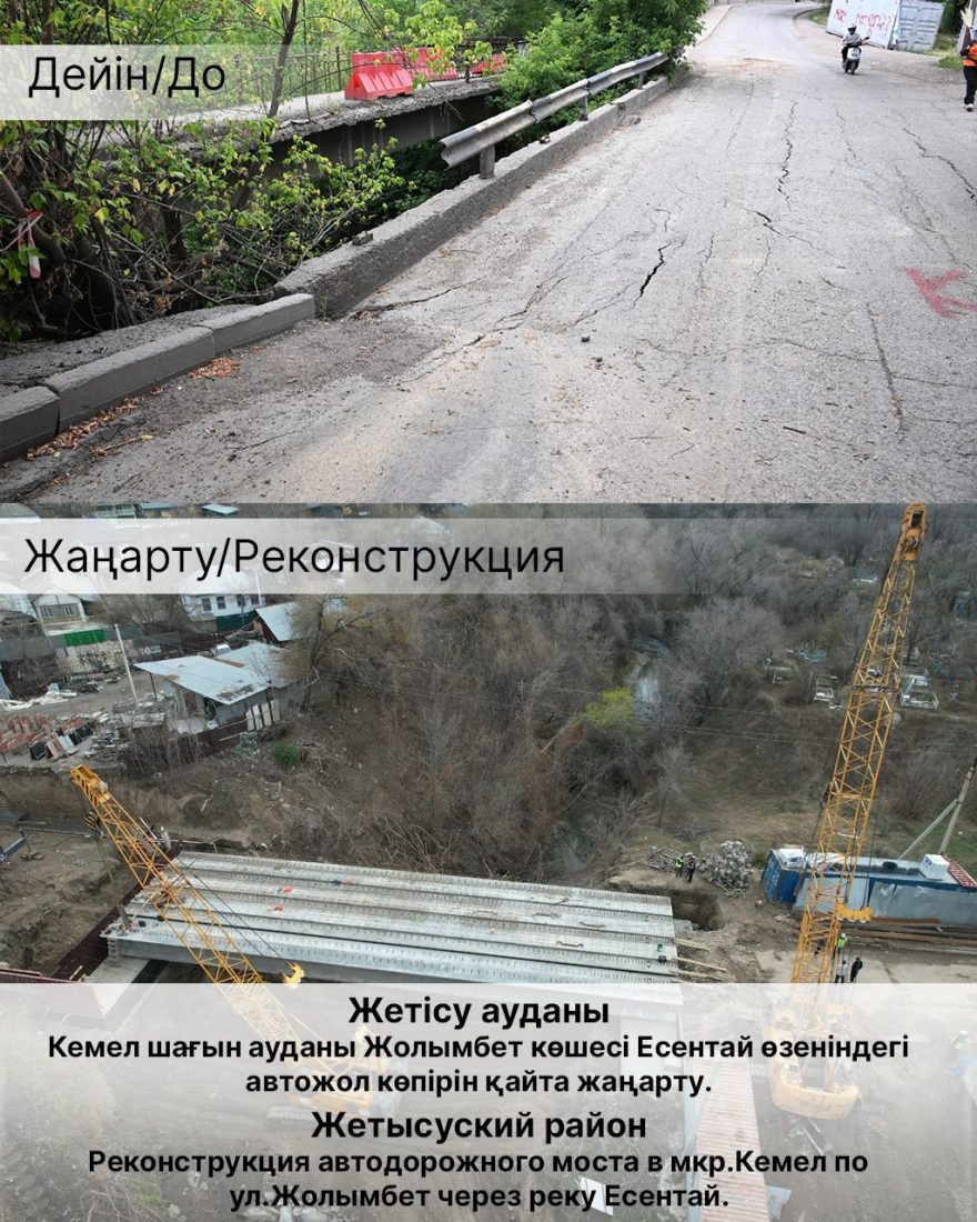 Жетісу ауданына жұмыс сапары барысында Алматы әкімі Ерболат Досаев «Кемел» шағын ауданында Есентай өзені бойына салынып жатқан көпірді аралап көрді. Бұған дейін мегаполис басшысының тапсырмасы бойынша көпірдің апатты жағдайына қатысты қозғалыс жабылған болатын.