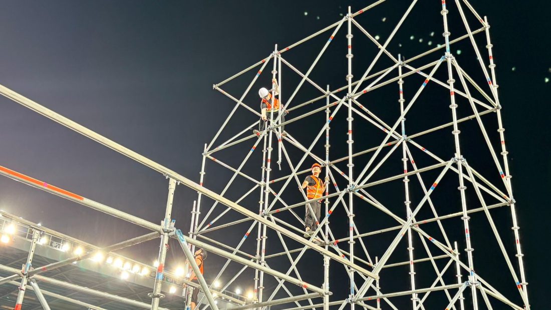 Алаңда халықаралық стандарттарға сай, көпдеңгейлі, ауқымды сахна орнатылуда: тік мұнаралар, көтерілетін платформалар, аса дәл жарық және бейне жүйесі. Қойылымның әр элементі секунд сайын есептеліп, мінсіз жұмыс істеуі үшін әр елден жиналған білікті мамандардың үйлесімді еңбегімен жасалып жатыр.