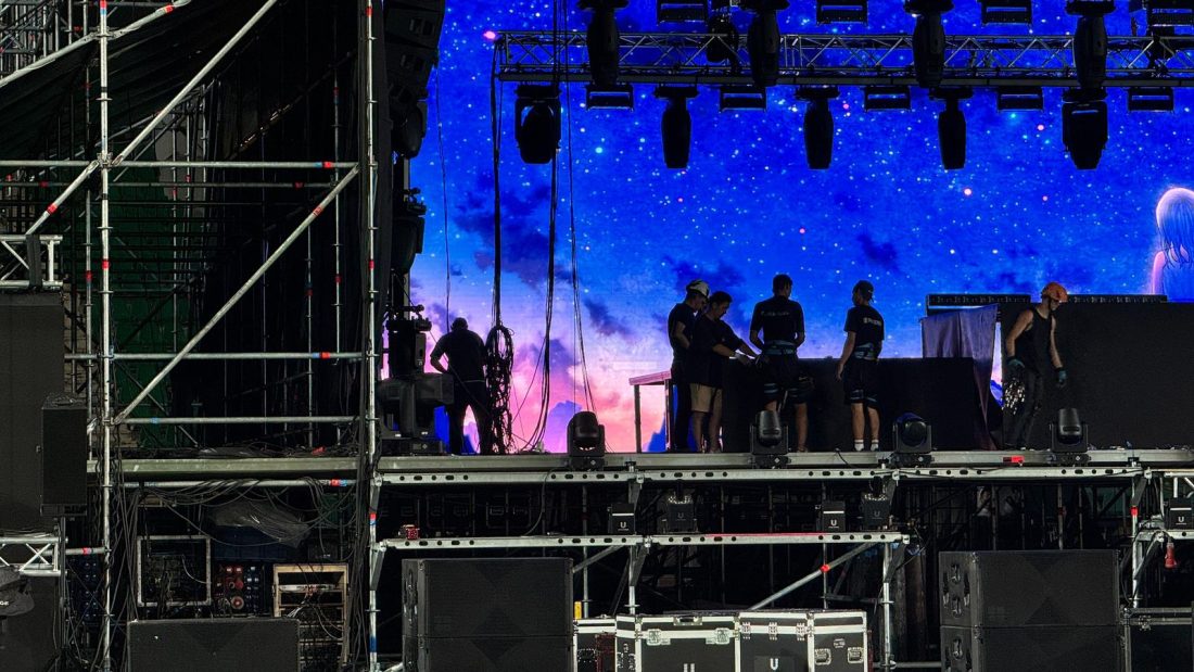 «Қайрат» ФК ойыны аяқталған бойда стадионға қазақстандық прокат компанияларының жабдықтары тиелген бес жүк көлігі кірді. Бар-жоғы үш күн ішінде, тәулік бойы жұмыс істей отырып, 220-дан астам техникалық маман — монтажшылар, инженерлер, үйлестірушілер еңбек етіп жатыр. Біз сахнаны орнатумен қатар, қауіпсіздік қызметкерлеріне, еріктілерге, билет сатушыларға нұсқаулық өткізіп жатырмыз. Бұл ауқымы мен орындалу жылдамдығы жағынан командалық жеңіс болған жоба. Тіпті, әлемдік турдың техникалық директоры да біздің жұмыс ырғағымызға таңданыс білдірді», — деді First Media Group директоры Әльфия Нұрғұмарова.