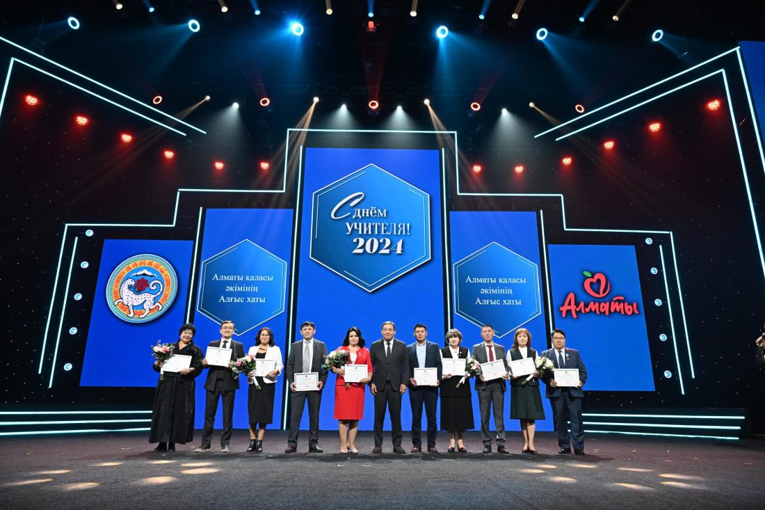 Іс-шара барысында қала басшысы «Алматы ұстазы» байқауының жеңімпаздарын марапаттады. Байқауға 2 мың адам қатысқан, бұл рекордтық көрсеткіш. Жеңімпаздар қатарында 7 педагог бар: №173 мектеп-лицейдің тарих пәні мұғалімі Ернұр Бейсембаев, №140 мектеп-гимназияның информатика пәні мұғалімі Еркеназ Баймұрат, №92 мамандандырылған лицейдің химия пәні мұғалімі Суннатулла Қауымбаев, №178 мамандандырылған лицейдің биология пәні мұғалімі Айдана Айдарова, №159 гимназияның математика пәні мұғалімі Әзизхан Өміралханов, №70 орта мектептің орыс тілі мен әдебиеті пәнінің мұғалімі Анастасия Благодатская және №12 мамандандырылған мектептің қазақ тілі мен әдебиеті пәні мұғалімі Дулат Сұлтанбек.