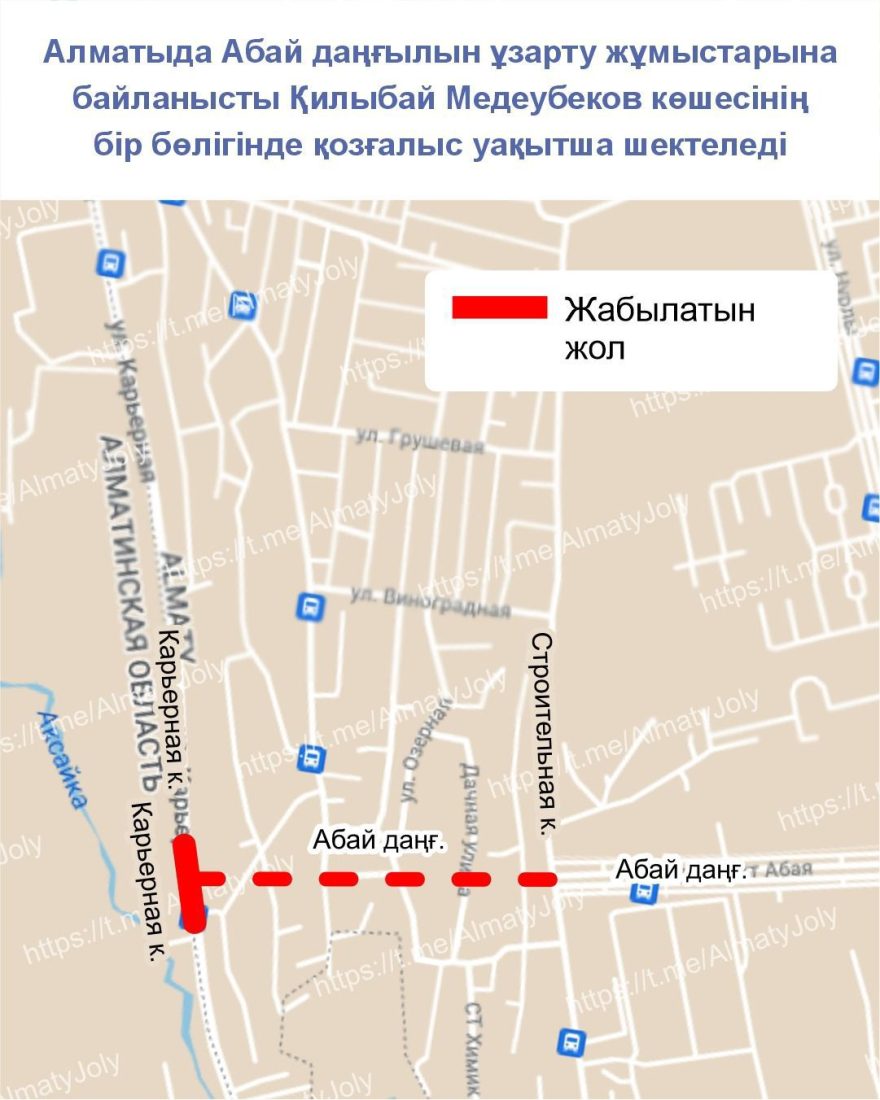 Алматыда Абай даңғылын ұзарту жұмыстарына байланысты Қилыбай Медеубеков көшесінің бір бөлігінде қозғалыс уақытша шектеледі
