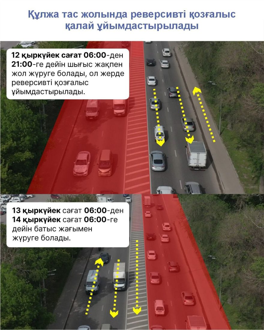 Бұдан әрі 12 қыркүйек сағат 06.00-ден 21.00-ге дейін шығыс жақпен жол жүруге болады, ол жерде реверсивті қозғалыс ұйымдастырылады.