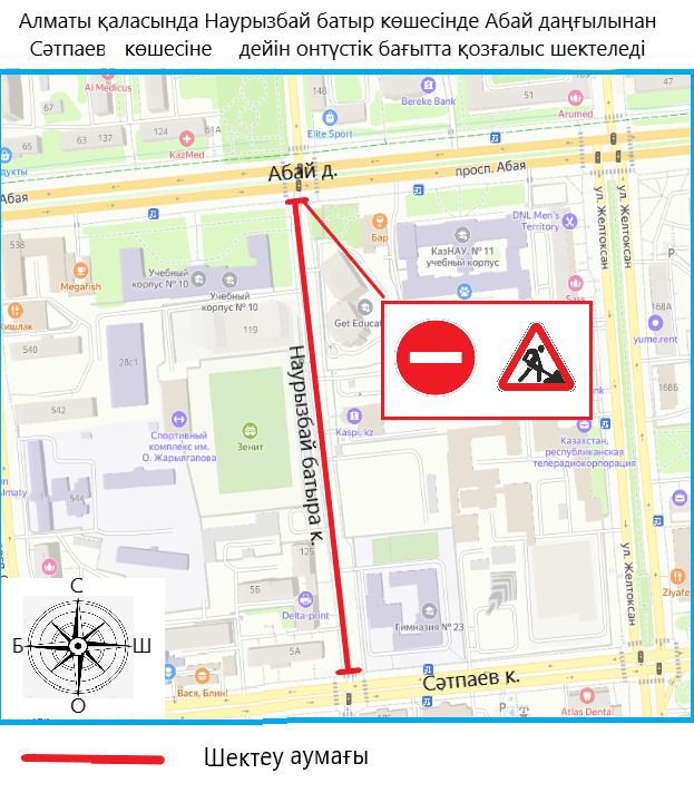 3 маусымда сағат 23:00-ден бастап 4 маусым сағат 08:00-ге дейін Алматының Бостандық ауданына қарасты Наурызбай көшесінің бойында Абай даңғылынан Сәтбаев көшесіне дейін автокөліктердің қозғалысы жартылай шектеледі.