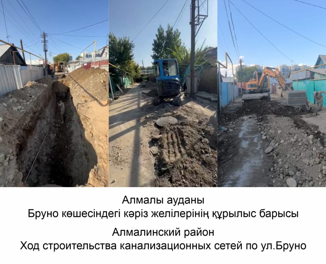 Жоба бойынша Алмалы ауданының 19 көшесінде жалпы ұзындығы 15 км болатын кәріз желілерін салу көзделген. Биыл 6 көшеде 3 км желінің құрылысы аяқталады. Сонымен қатар, жеке сектор салына бастағаннан бері орталықтандырылған кәріз жүйесі болмаған Бруно көшесінде құрылыс жұмыстары аяқталды.