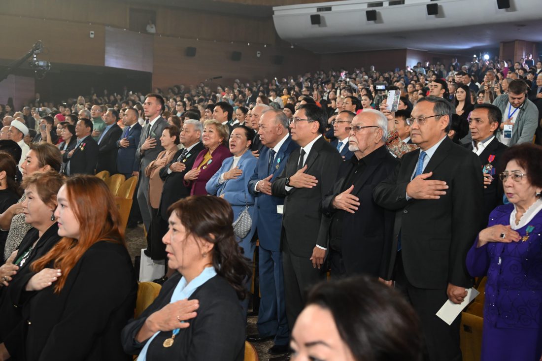 Концерттің ресми бөлімі Қазақстан Республикасының Мемлекеттік туын сахнаға алып шығып, елдің еңбек сіңірген қайраткері Талғат Күзембаевтың Мемлекеттік әнұранды орындауымен басталды.