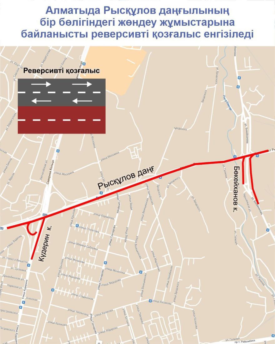 11 тамыз сағат 23:00-ден 13 тамыз сағат 11:00-ге дейін Рысқұлов-Күдерин жолайырығынан бастап, Рысқұлов-Бөкейханов жолайырығына дейінгі даңғылдың оңтүстік жағында қозғалыс жабылады.