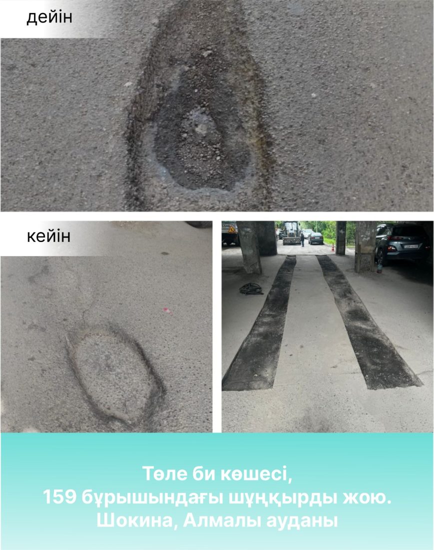 Естеріңізге сала кетейік, 2023 жылы Алматыда ұзындығы 200 км болатын 175 көшеде жол жабынына орташа жөндеу жүргізілді, орташа жөндеуге кепілдік мерзімі 3 жыл, осы уақыт ішінде мердігер кез келген ақауды өзі түзетеді. Бұл ретте, былтыр пилоттық режимде қаланың 15 магистральдық көшесінде жөндеу кезінде жолға және жарыққа төзімділікті арттыруға бағытталған полимерасфальтобетон пайдаланылды. Мұндай қоспалар тозуға төзімді, жұмсарту температурасы жоғары (65-70°C), сондықтан ыстыққа төтеп бере алады, әлдеқайда ұзағырақ – қазіргі 5 жылдың орнына 8-10 жылға дейін пайдалануға болады. Биыл бұл тәжірибе жалғасады.