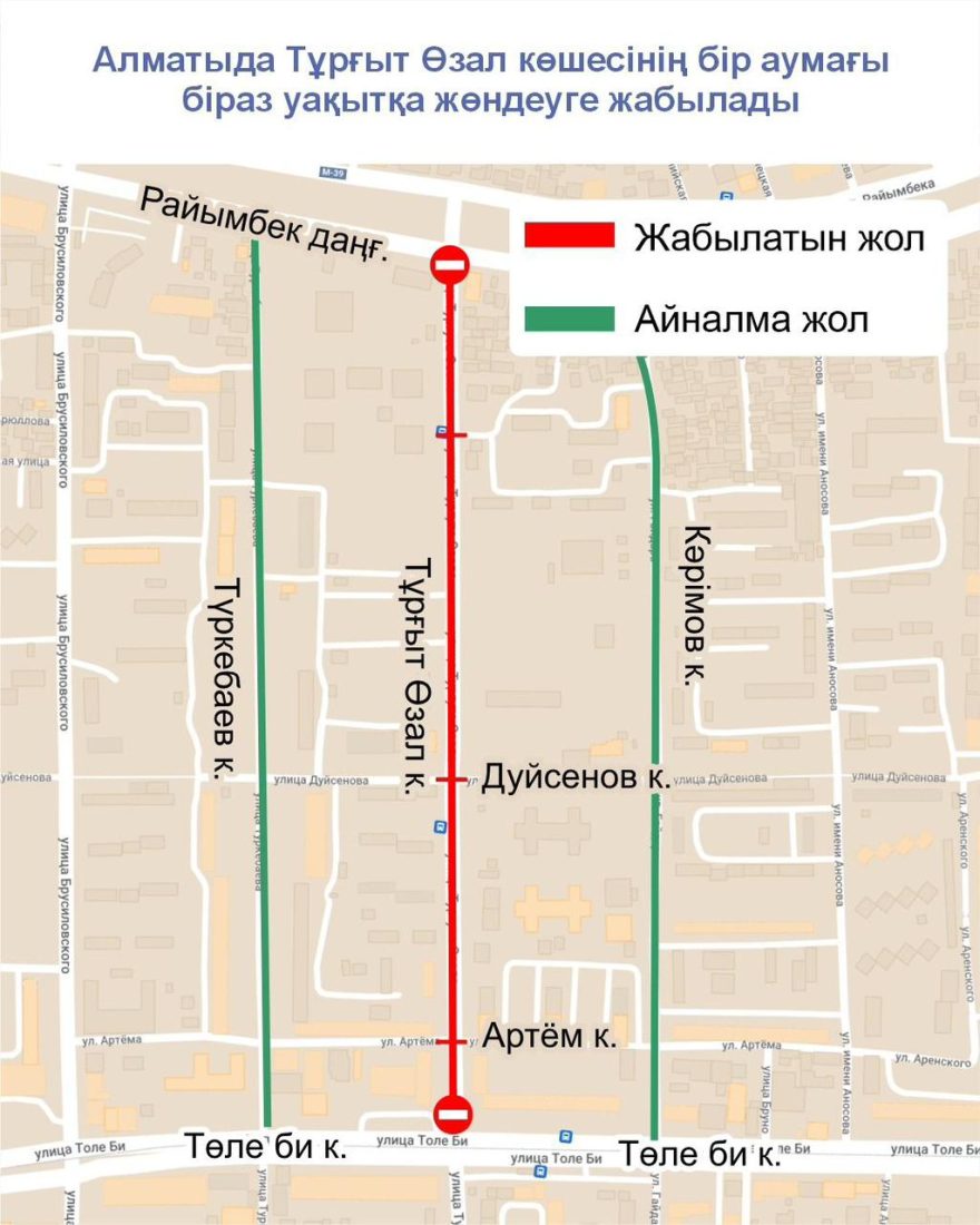 Алматыда Тұрғыт Өзал көшесінің бір бөлігі біраз уақытқа жөндеуге жабылады