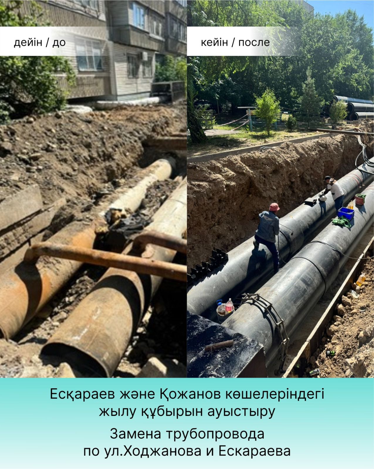Жалпы, осы жылы Алматы қаласының әкімі Ерболат Досаевтың тапсырмасы бойынша 20 км жылу желілері жаңғыртылды. Жыл сайын жаңғырту жылытуаралық кезең ішінде жүргізіледі, биылғы жылы мұндай жұмыстар Алматының 6 ауданында іске асырылды. Жылумен жабдықтау желілері жаңғыртылған учаскелерді абаттандыру ауа-райы жағдайларын ескере отырып, кезең-кезеңімен жүргізілуде.