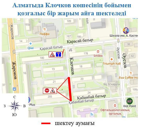 Осыған байланысты 2025 жылдың 16 шілдесі мен 1 тамызы аралығында Алматы қаласының Алмалы ауданында Клочков көшесінің бойымен Қарасай батыр көшесінен Қабанбай батыр көшесіне дейінгі аумақта автокөліктер үшін қозғалыс жабылады. Екі бағытта да көлік қозғалысы шектелмек.