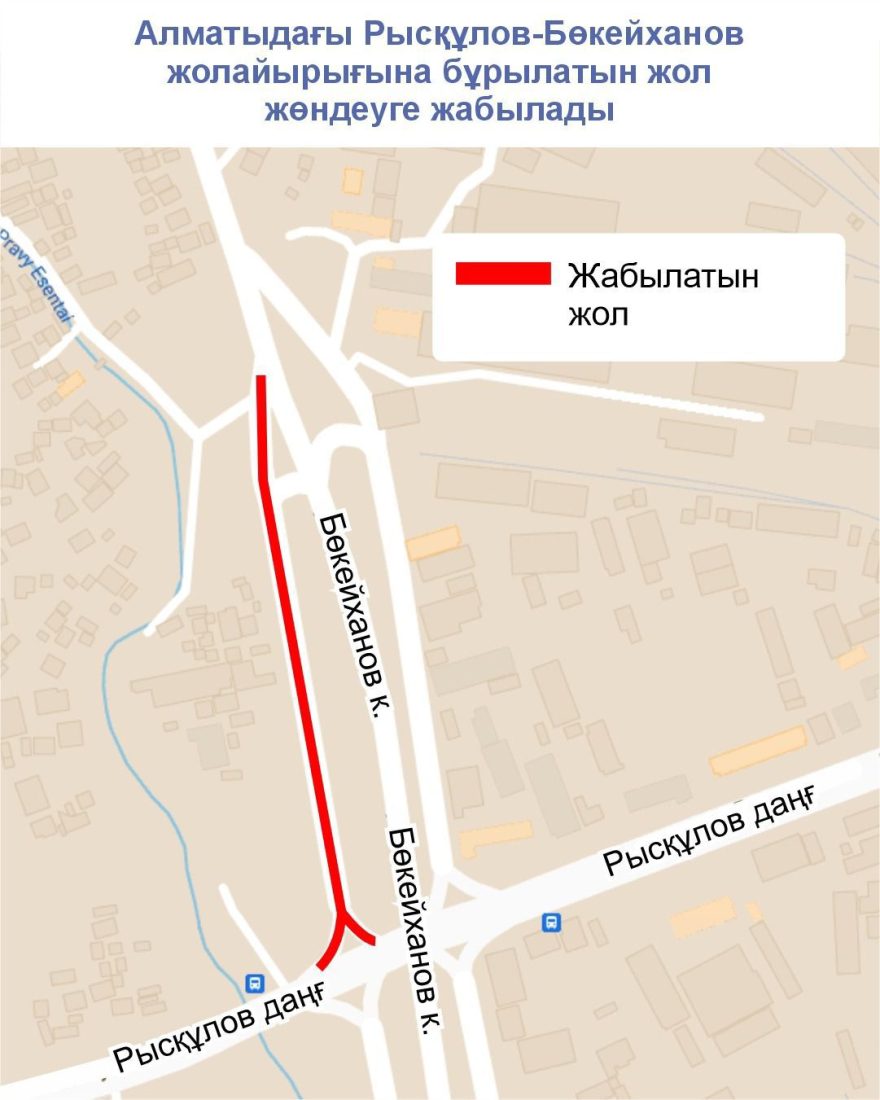 2 тамыз сағат 23.00-ден 4 тамыз сағат 11.00-ге дейін жолайырықтың солтүстік-батысқа бұрылатын жолда қозғалыс толығымен жабылады.
