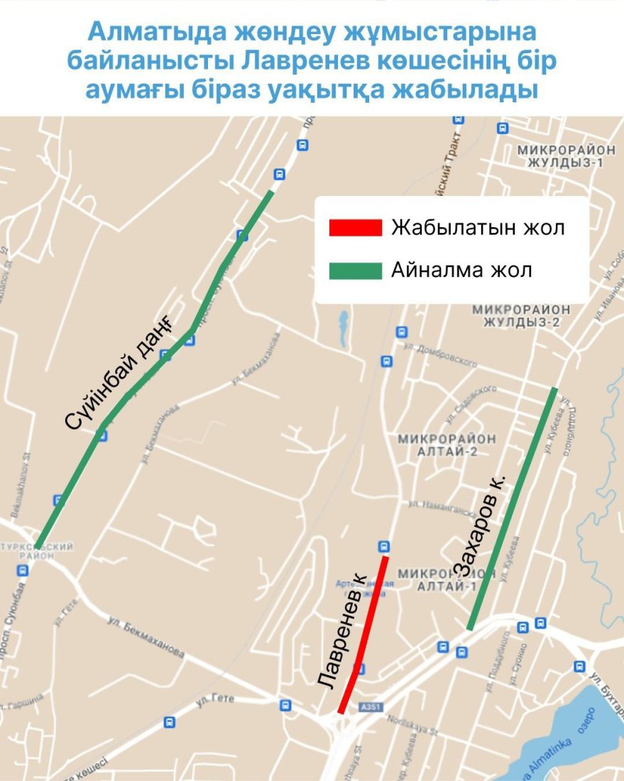 Алматыда жөндеу жұмыстарына байланысты Лавренев көшесінің бір аумағы біраз уақытқа жабылады
