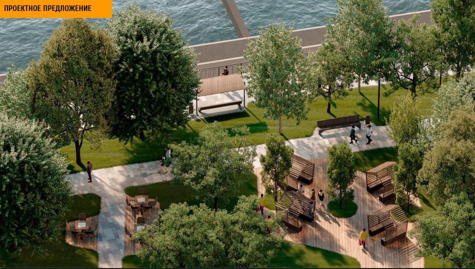 Жоба аясында өзен жағалауында жаяу жүргіншілер мен велосипед жолдары, жаңа саябақтар мен демалыс орындары салынады. Заманауи қала кеңістігіне сай, орындықтар мен көгалдандыру элементтері орнатылады. Сонымен қатар, аумақ мақсатты бағыттар бойынша жүйеленіп, жастар мен студенттерге арналған, мәдени және белсенді демалыс аймақтары, сондай-ақ тыныш демалысқа арналған тынығу орындары қамтылады.