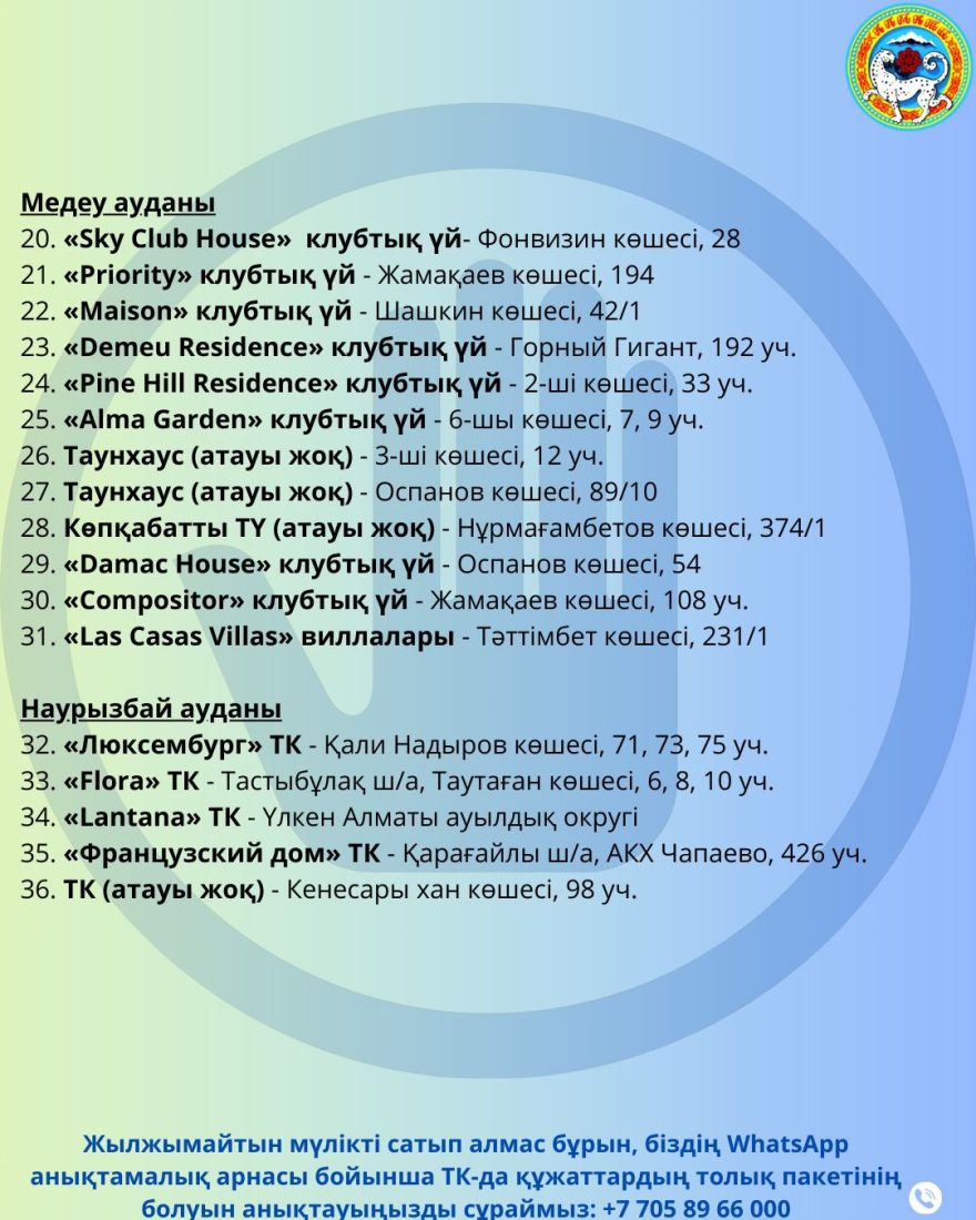 Алматыда жылжымайтын мүлік сатып алуға болмайтын ТК тізімі жаңартылды