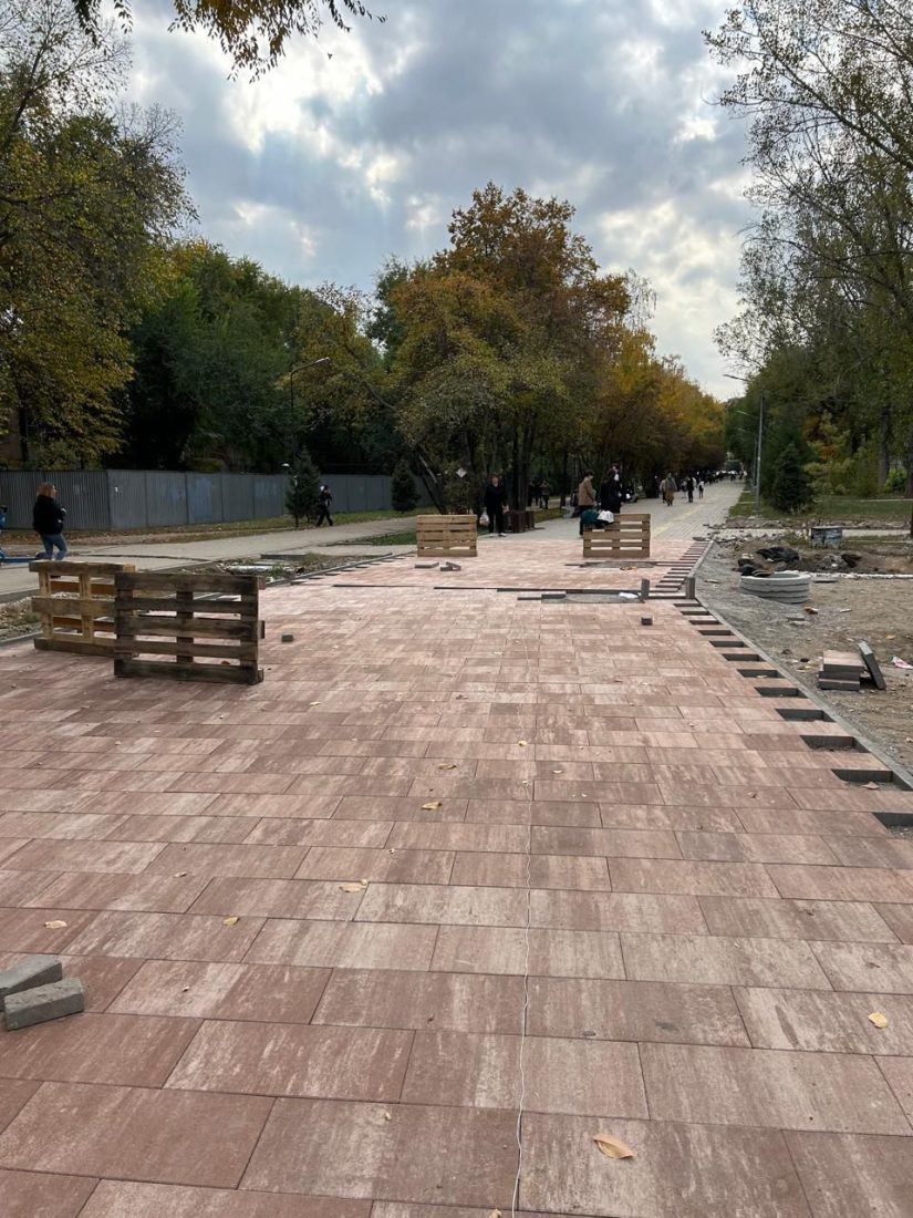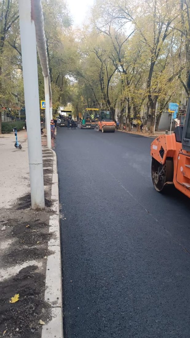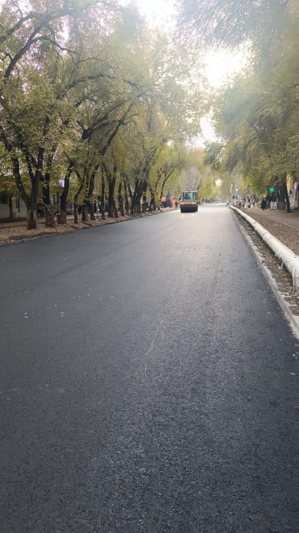 Қазіргі уақытта осы учаскені көріктендіру – жол төсемін ұсақ түйіршікті асфальтпен төсеу жұмыстары жүргізіліп жатыр, кейін жол таңбалары сызылады.