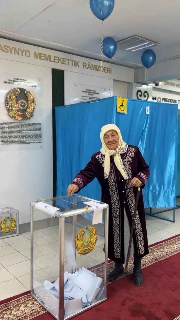 10 немересі мен 9 шөбересі бар 86 жастағы Құлжахан Әлмырзақызы да №177 мектеп-гимназиясында – 356 сайлау учаскесінде дауыс берді.