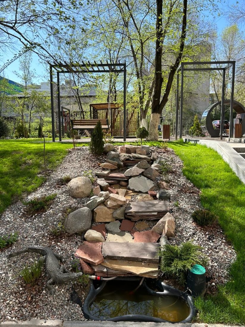 «Үздік аула» номинациясының жеңімпазы атанған Алмалы ауданында тұратын Наталья Лазарева ауланы көркейту идеясын көршілерімен бірге 2020 жылы ойлағанын айтады. Тұрғындар көгал егіп, миксбордерге жиектастар қойды. Кейінірек аулада сарқырамасы бар альпілік төбешік пайда болды.