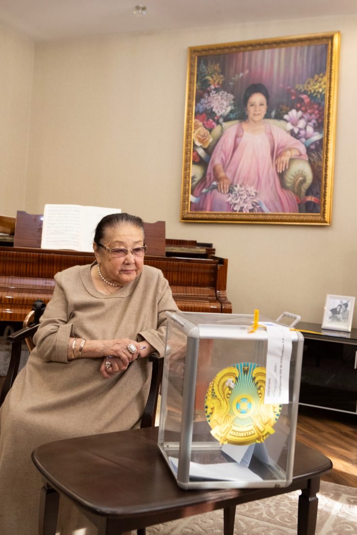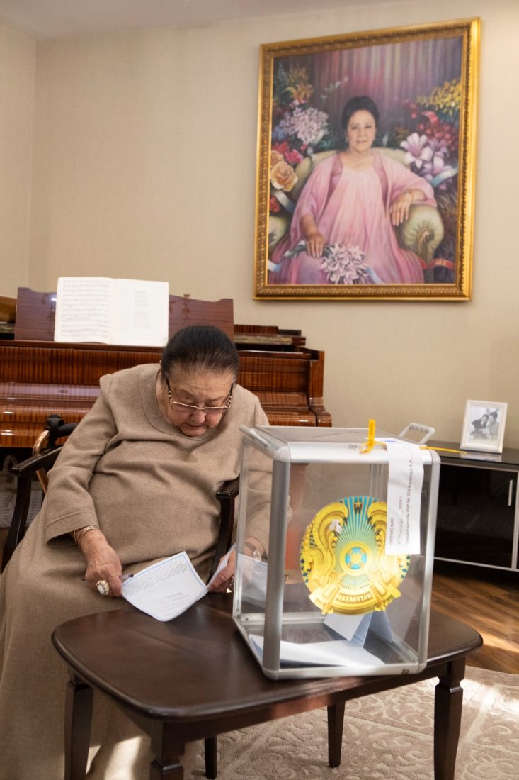 Бибігүл Ахметқызы дауысын үйінде берді. №559 сайлау учаскесінің өкілдері бюллетеньдерге арналған урнаны Бибігүл Ахметқызының тұрғылықты мекенжайына әкелді.