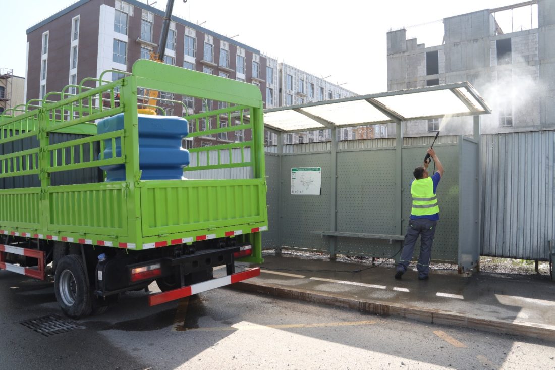 15 мыңға жуық орындық, 25 мың қоқыс жәшігі жуылып, боялды, 1 485 контейнерлік алаң дезинфекцияланып, жуылды. Жергілікті қоғамдастықтармен бірлесіп 5 567 аула аумағы тазартылды.