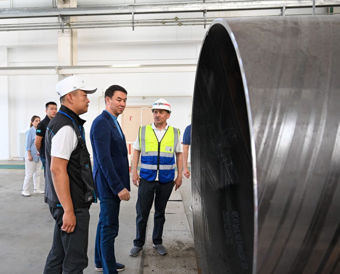 Сапар соңында әкім үлкен диаметрлі болат құбырлар шығаратын «Asia Steel Pipe Corporation» ЖШС зауытына барды. 33 млрд теңгеге бағаланған жоба аясында 304 адам жұмыспен қамтылған. Зауыт жылына 100 мың тонна өнім шығаруға қауқарлы. Дегенмен, қазіргі уақытта сұраныстың аздығына байланысты кәсіпорын уақытша тоқтап тұр.