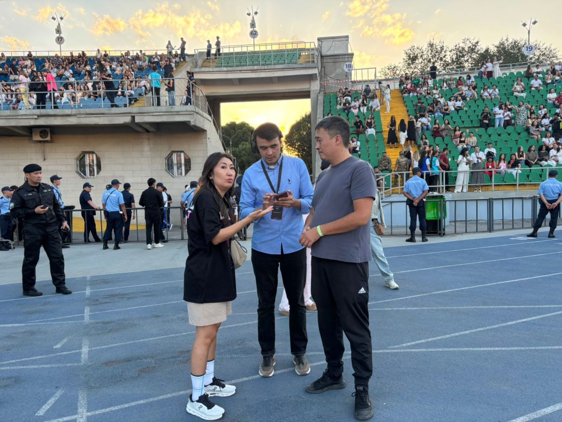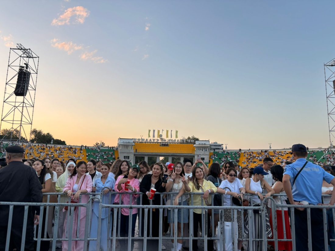 Еріктілер мен стюардтар Дженнифер Лопес концертіне келген көрермендерді орындарына орналастыруға жәрдемдесіп жүр 🎤🌟