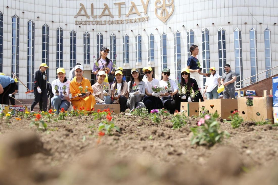 Сондай-ақ театр алдына ҚР Халық артисі Тұңғышбай Жаманқұлов, ҚР Халық артисі Рамазан Стамғазиев, ҚР Еңбек сіңірген қайраткері Сәуле Жанпейісова, ҚР Еңбек сіңірген қайраткері Ардақ Исатаева, ҚР мәдениет қайраткері Қадырғали Көбентай, ҚР Еңбек сіңірген қайраткері Еркін Шүкіман, дәстүрлі қазақ әндерін орындаушы Амангелді Күзеубай және мәдениет саласының басқа да танымал өкілдері өз атынан алма көшетін екті. «Алатау» дәстүрлі өнер театрының алдына барлығы 60 ағаш және 2500 гүл отырғызылды.