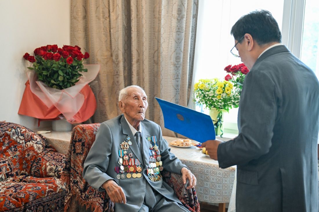 Бүгінде қарт майдангер 100 жасқа толып отыр. Қала әкімі Ерболат Досаев ақсақалға арнайы барып, Мемлекет басшысының сәлемі мен құттықтауын, жылы лебізін жеткізді.