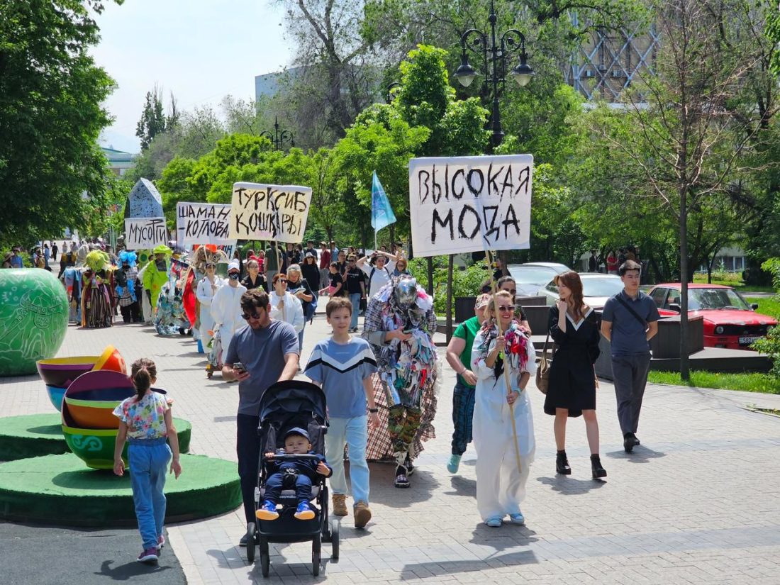 Қоқыс түріндегі костюмді кейіпкерлерді (Мұнай өңдеу өнімдерінен өндірілетін қоқыс – «Әуе патшайымы» ауаның ластануының символы ретіндегі «Қоқыс бике Мұнайбайқызы» – және т.б.) алматылық суретшілер тобы жасаған, олар осылайша тиімсіз тұтыну мен табиғи ресурстарға жауапсыз қарау салдарына назар аударуға тырысты. Флешмоб тұжырымдамасы бойынша «Мусорги» орталық көшелердің бірі Панфилов бойымен жүріп, Арбатта шеру аяқталды. Жүздеген қала тұрғыны экологиялық мәселені дер кезінде шешудің маңызы туралы пікір білдіріп, ерекше арт-жобаны көруге келді. Жобаға «Астана моторс» компаниясы демеушілік көрсеткен.