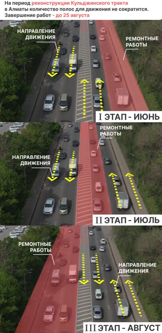 В Алматы 4 июня начнется реконструкция Кульджинского тракта от проспекта Рыскулова до улицы Бухтарминской. В рамках работ планируется расширение проезжей части с 4 до 6 полос, что позволит увеличить пропускную способность участка в два раза.
