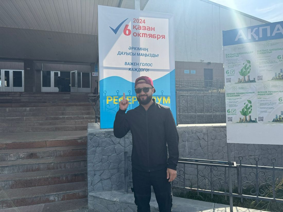 Атом электр станциясын ( АЭС) салу мәселесі бойынша референдумға қатысқан әнші Нұрсұлтан Байғұн Алматының Алатау ауданындағы №176 мектеп-гимназиясында орналасқан №508 сайлау учаскесіне келді.