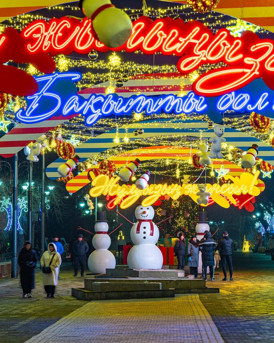 Жаңа жыл қарсаңында Алматы ерекше безендірілді. Әуежайдан бастап орталық алаңдарға дейін қала толығымен мерекелік кейіпке енді. Қалада 300-ге жуық жарқыраған құрылым орнатылды, олардың арасында ертегі кейіпкерлері мен мерекелік әшекейлер бейнеленген. Сонымен қатар, былтыр жөндеуден өткен 120 шағын сәулет нысандары қайта пайдаланылды. Магистральды көшелер бойындағы ағаштар жарықдиодты шамдар мен гирляндалармен безендірілген. Жалпы, қала бойынша 1500 жарық элементі орнатылды, оның ішінде 350-і – қалпына келтірілген өткен жылғы кронштейн.